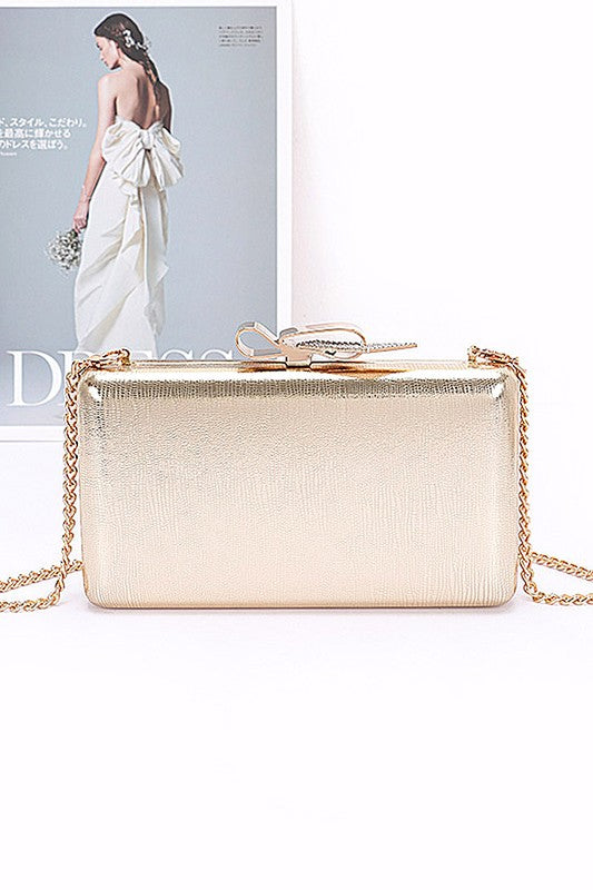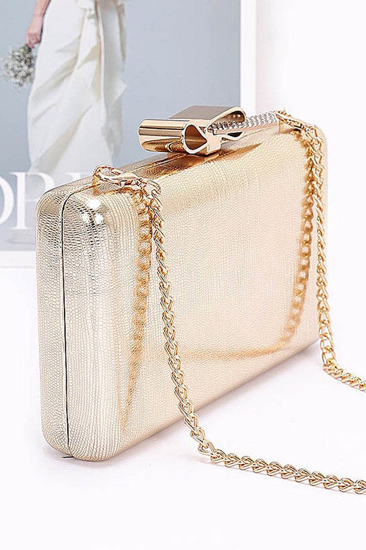 Metal ribbon top clutch