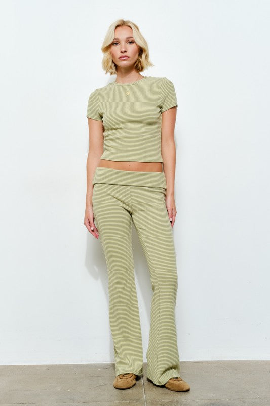 Ribbed knit stripe pattern short sleeve baby tee for casual comfort. *T-shirt Only*